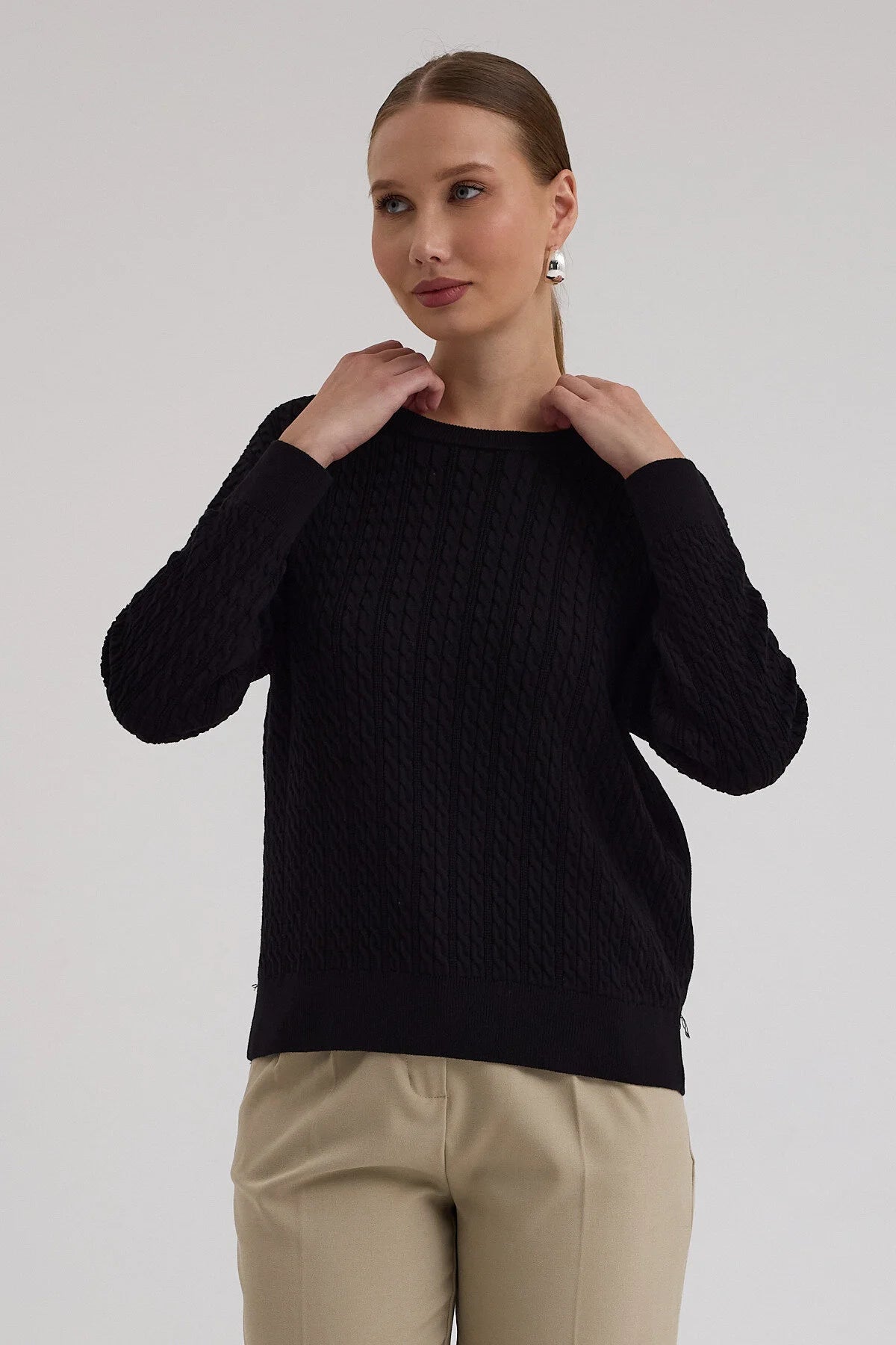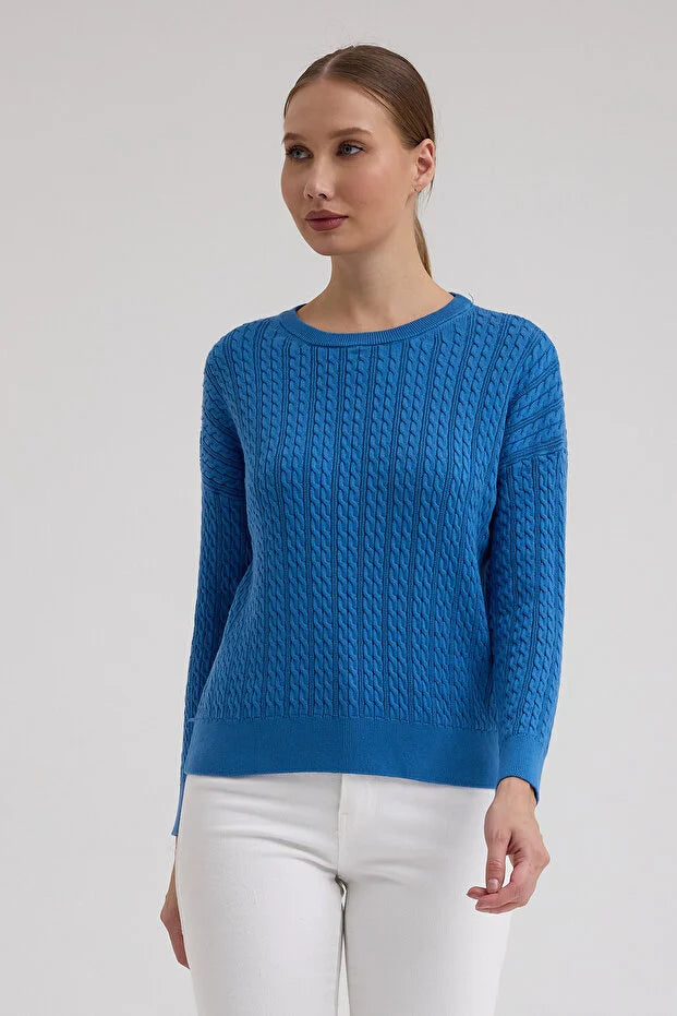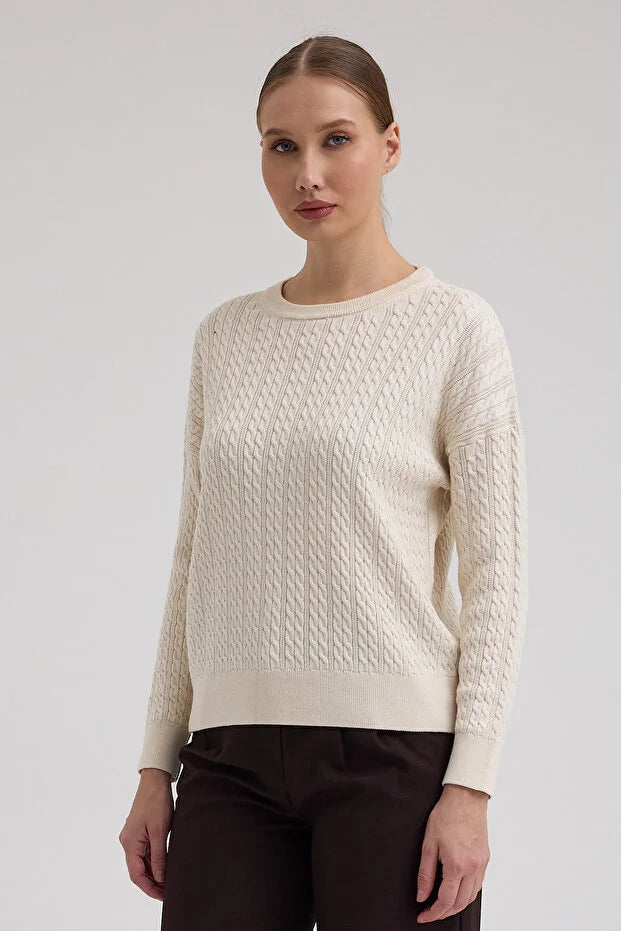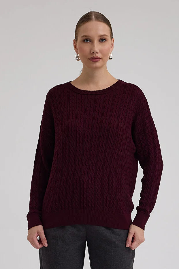 Lisanslı Saç Örgü Kayık Yaka Kazak