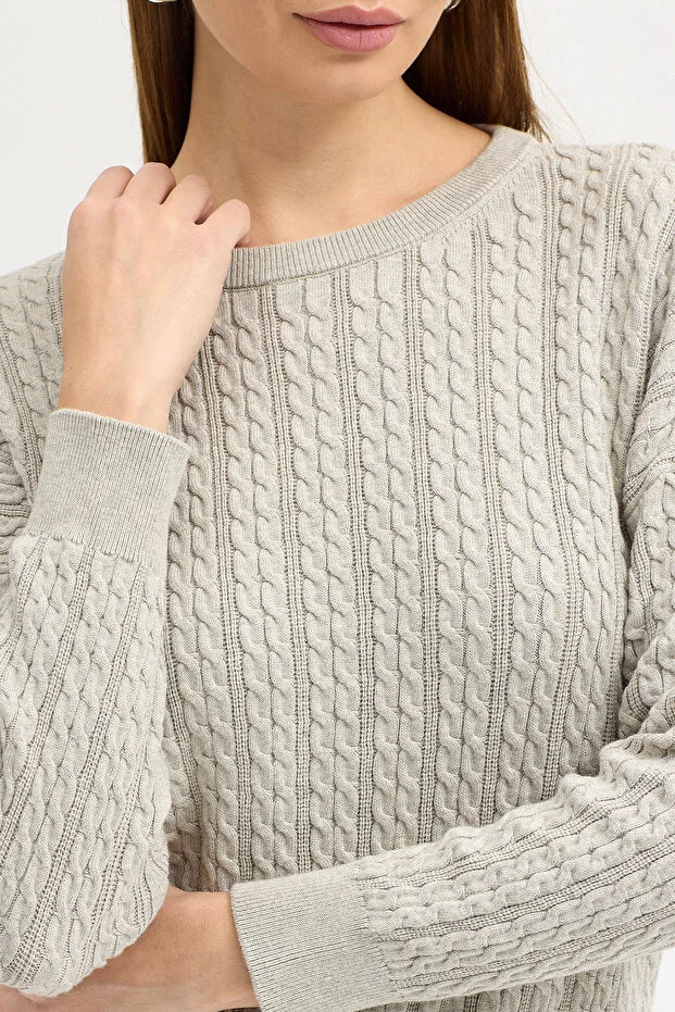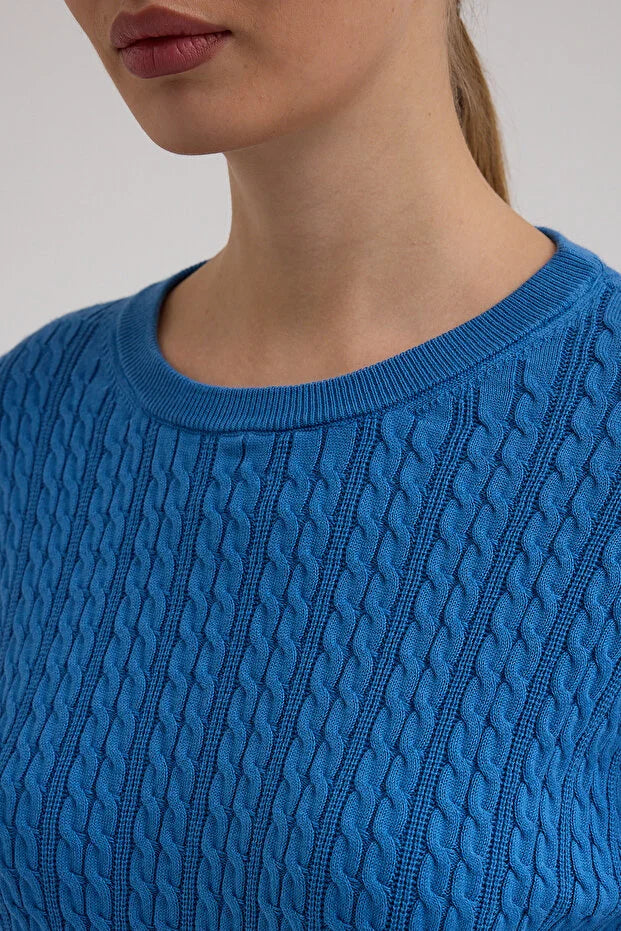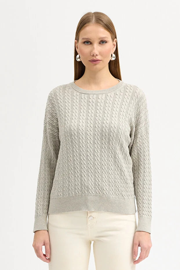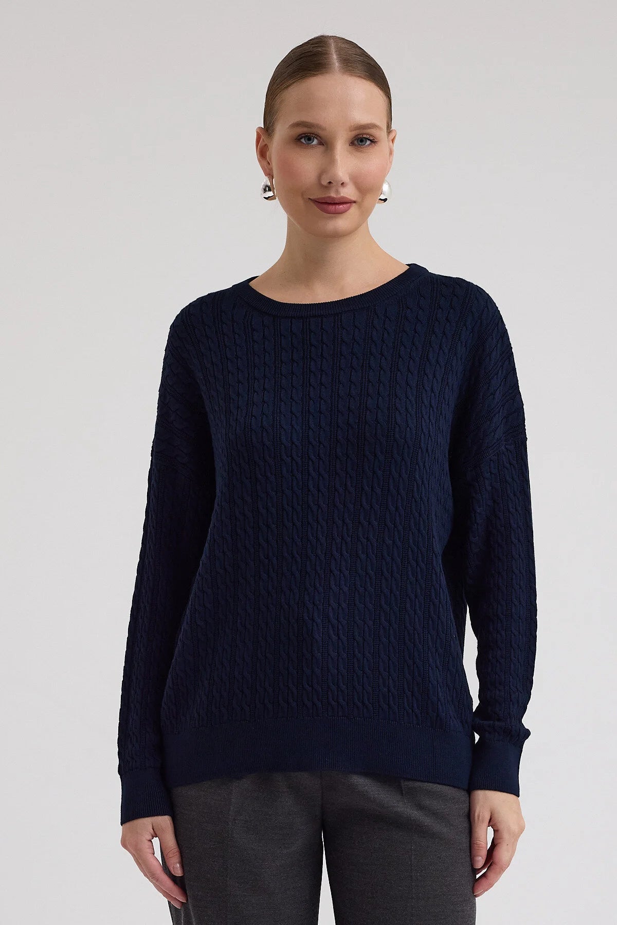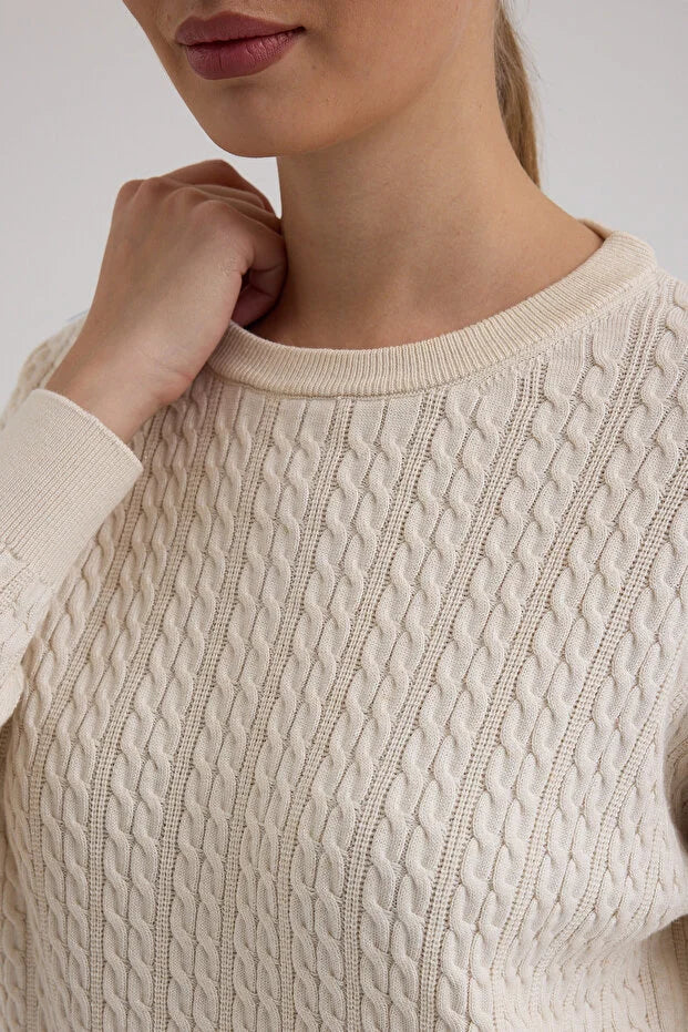 Lisanslı Saç Örgü Kayık Yaka Kazak