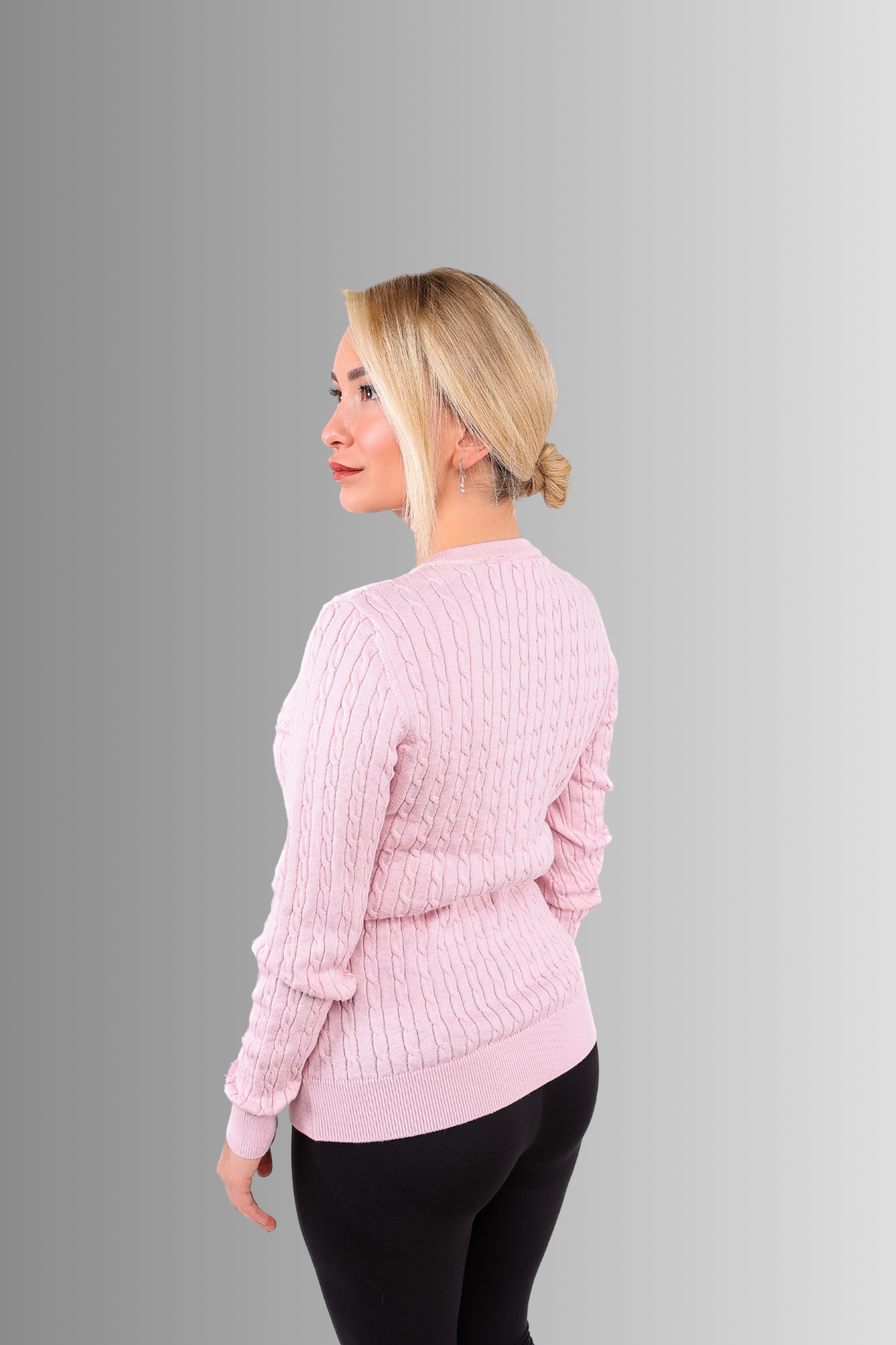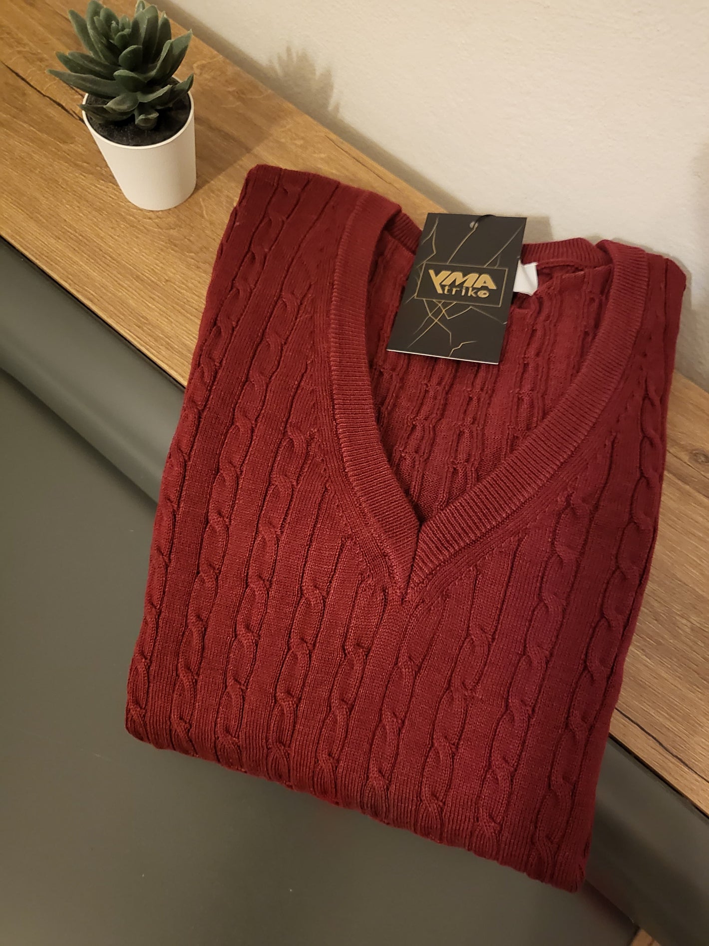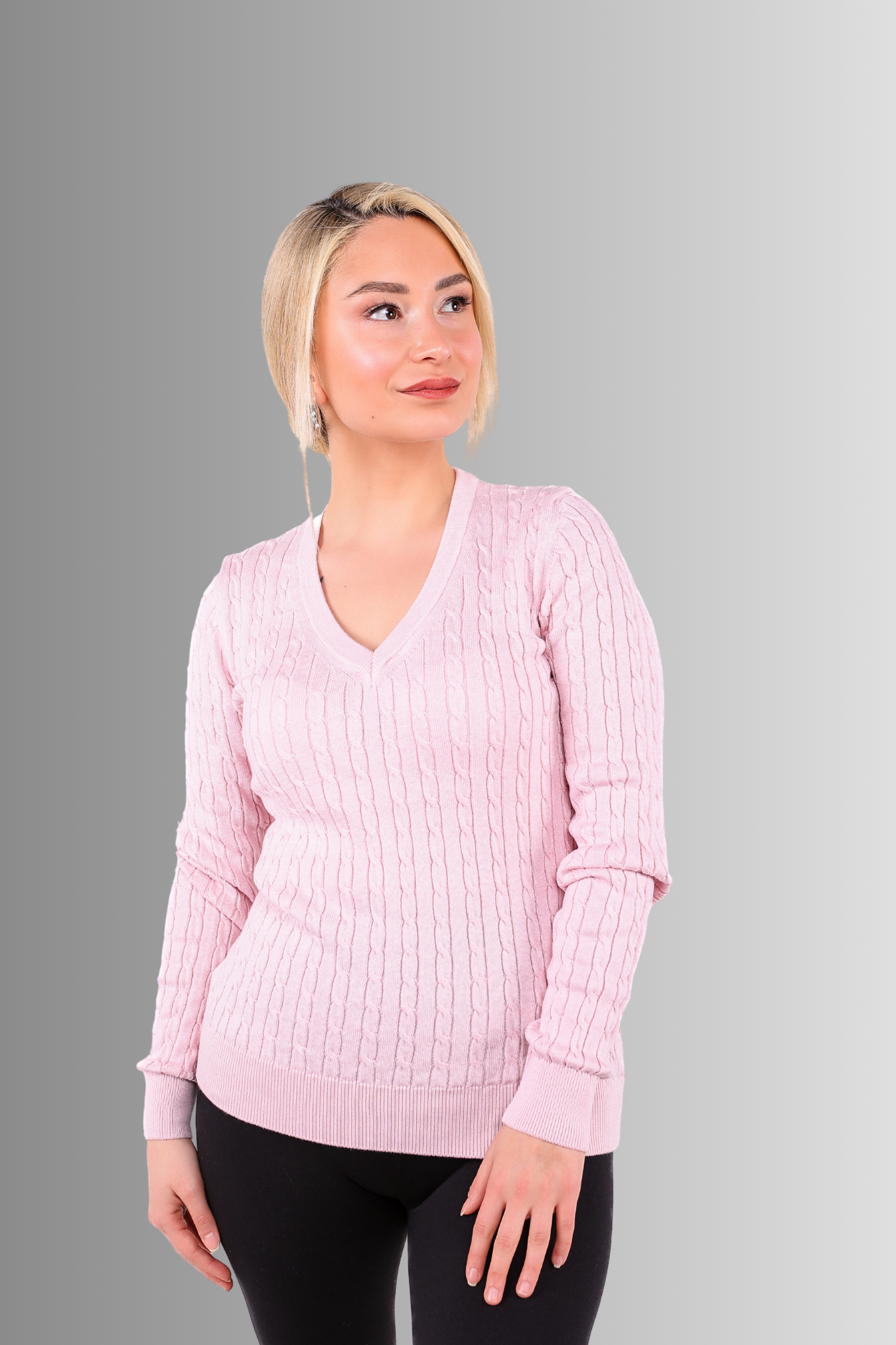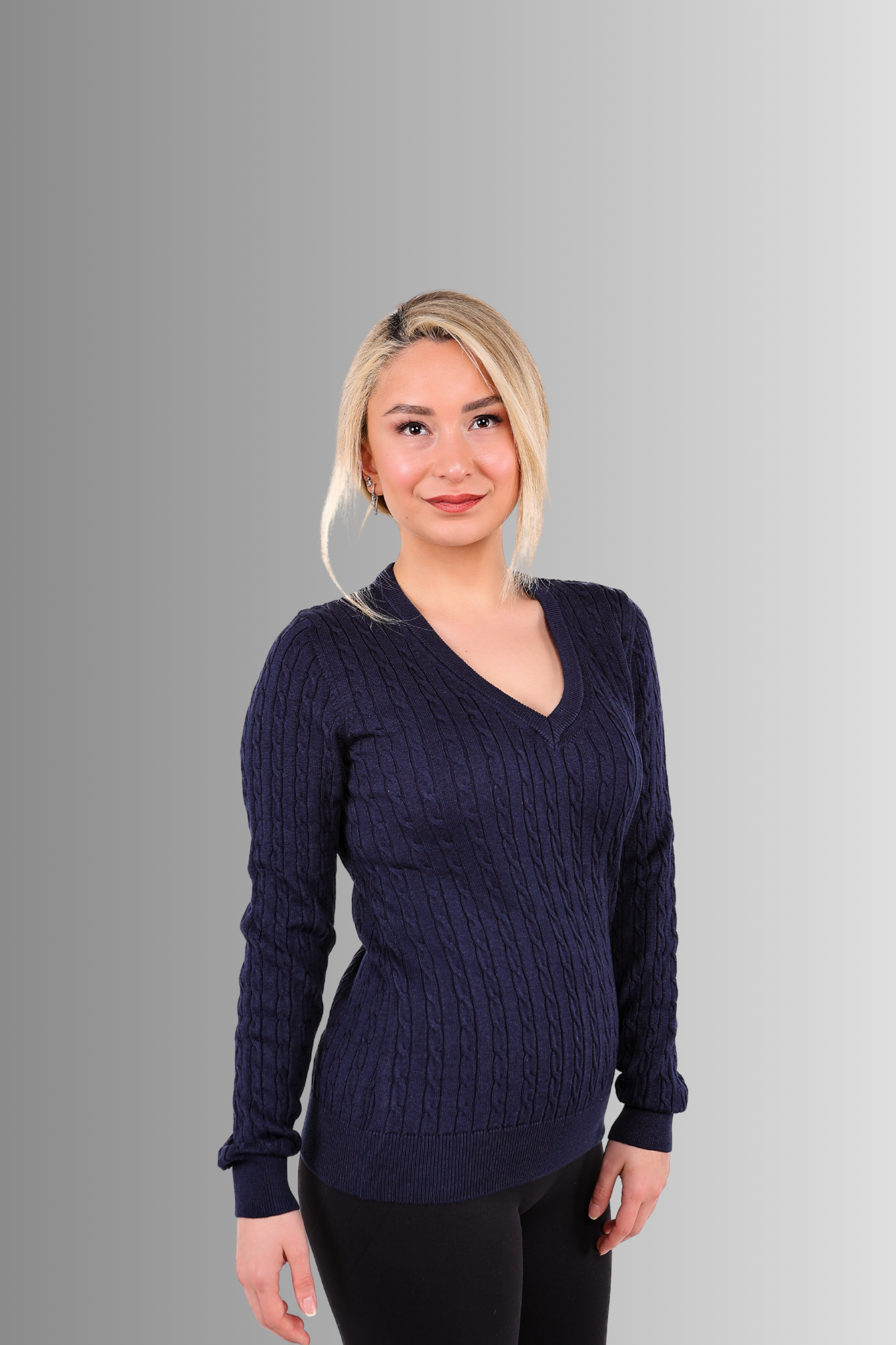 V yaka ve Saç Örgü detaylarının, kazağı hem gündelik hem de şık ortamlar için çok yönlü bir ürün haline getirdiğini onayladı.